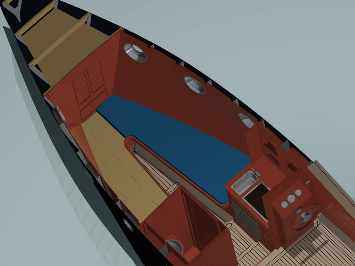 Inneneinrichtung und Deck aussehen könnte. Sie können den Innenausbau sowie den Einbau von