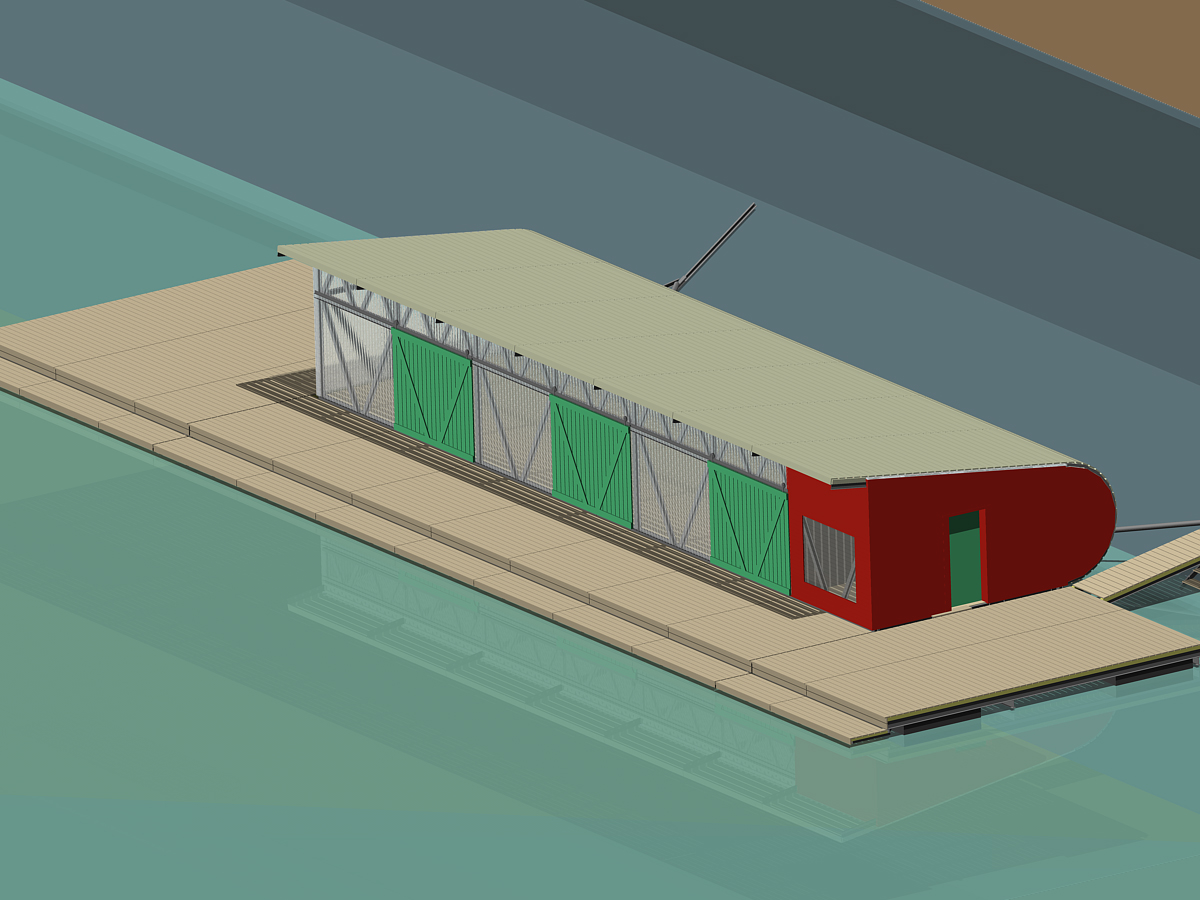 Steganlagen, schwimmende Hallen und Bootsgaragen einschliesslich